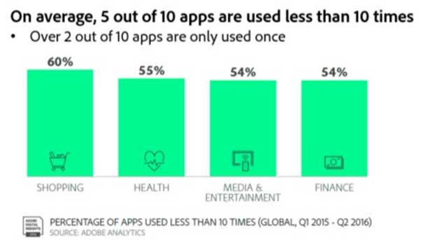 3. Avoir une application ne suffit pas. Le cimetière d’application grandi à mesure des abandons et du manque d’optimisation mobile.